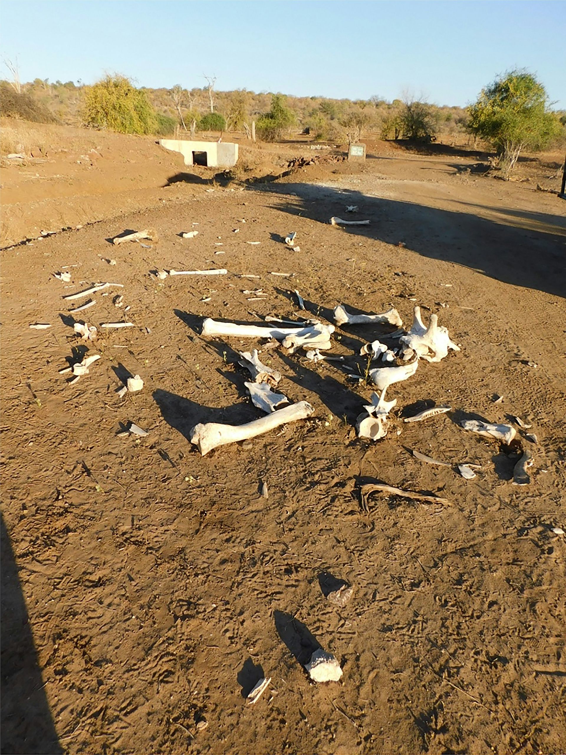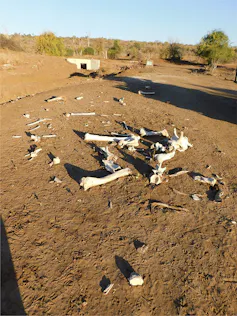 Giraffe bones, disturbed by hyena, Botswana. Author provided (no reuse)